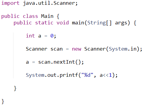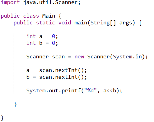 정수 2개(a, b)를 입력받아 a를 2b배 곱한 값으로 출력해보자.