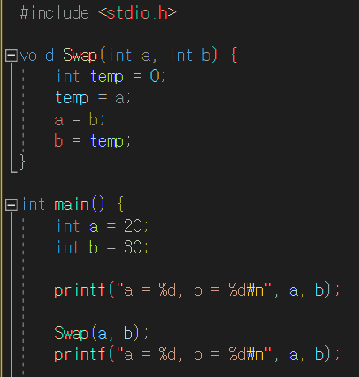 그렇다면 원하는 대로 Swap 함수를 실행시키려면 주소값을 전달해 줘야 한다.